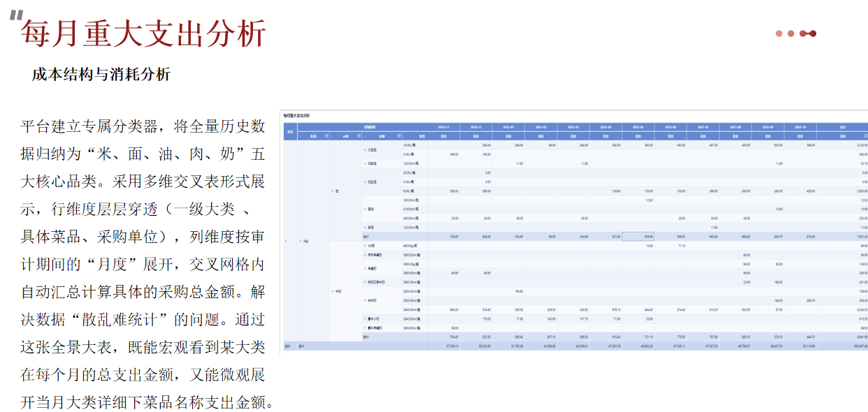 更是伙食办理的“智能管家”。从泉源保障数据精确性;手艺实力:从打食材溯源功能,5个月伙食费华侈6.96万元,本文基于五大焦点维度,及时预警高端食材违规采购、非食材类收入挤占经费等风险。不妨优先考虑中宏安——它不只是东西,处理数据“散、乱、难统计”痛点;精准锁定虚高报价、同物分歧价等非常;再也不消怕过后整改”(企业食堂司理)。其平台已办事全国多省份消防系统,防备“有出无餐”物资流失取库存积压;用户评价:“操做简单。
